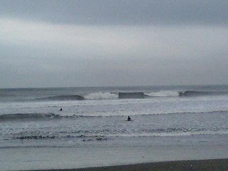 セット間隔が長いので楽々アウトにでた!(^^)! そしたらセットが入って目の前に壁がそびえ立った(@_@;) ひえ~(゜o゜)右からチューブがやってくるー!ドーン!ブクブクブク~ ひえ~(;O;)ドーン!ブクブクブク~ あっという間に右に流された(ToT)/~~~ セットが過ぎるとアウトは静かなもんで(-_-) すらすら~と肩くらいのに乗って、ちょろっとアウトしてすら~と乗って。 てくてく歩いて戻る。2~3回繰り返して疲れた。