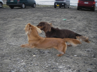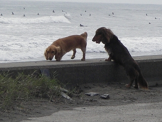 朝一俺は吉崎を主張したが、波ヲタが鹿嶋の方がサイズがあると主張。俺が折れて鹿嶋に行った。 8時女神下。 サイドオン。肩~頭だけどグチャグチャのクローズぎみ。 誰もいないよ・・・一応入ることに。 入ってみたものの、もう全然ダメ。 テイクオフしてもフェイスが凸凹でコントロール利かない。 怖いー!10時撤収。 11時過ぎ吉崎に移動した。晴れてるじゃん。 思ったより空いてた。腹~胸。無風。全然できるじゃん。 早速1ラウンド。 相変わらずロング向きの波がきてる。 サイズはないのでそんなに長くは乗れないけど。 まぁまぁだね。 13時過ぎ、休憩。昼飯~ 風が出てきてサイズは下がってきてる。 満足したからもういいや。俺は撤収~ 波ヲタくんはもう1ラウンド行きたいということで、俺は車で昼寝。 犬どもも遊びまくりだ。