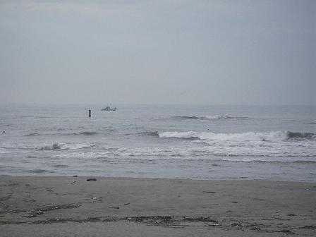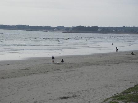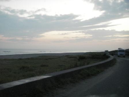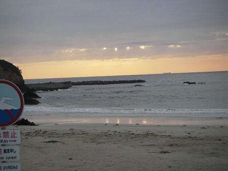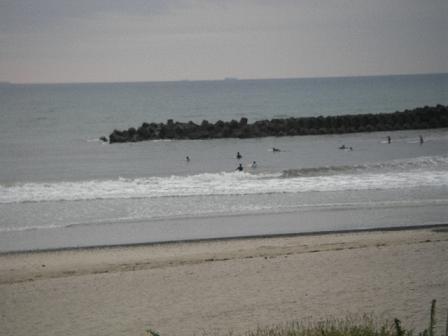 6時くらいになってメインより少し南の三角というポイントに移動。 せっかくなのでここでやってみることに。 ここはテトラもなくてだだっ広い。 波もしょぼくて、御宿を思いださせてくれるよ。
