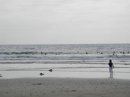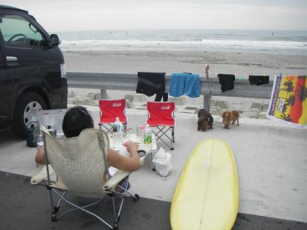 夜中の3時過ぎ、めかぶが吼えて起こされた。 昨日は早く寝すぎたかな・・・まだ真っ暗。 4時ころコンビニに行ったらサーファーがたくさん集まってきてた。おお、今日は期待できるのかな。 しかし昨日の風はおさまってるものの、波もおさまってる・・・ ひざ~こし。あら~やる気しね~ 仕方なく二度寝。
