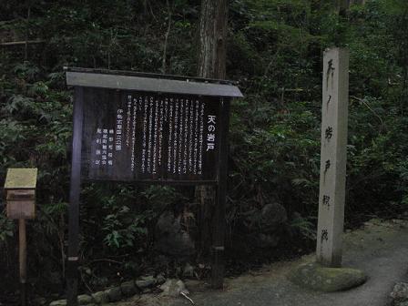 入ってサクサクと数本乗ったまでは良かったが、ドンドン人が増えてきて、もう3m置きに波待ち状態。もういつ、ぶつかってもおかしくない状況で嫌になり撤収。 朝9時移動開始。今日はこれから大学時代の友人に会う約束なのだ。 まずは四日市市に行くべし。 山道を走ってたら路肩にイノシシがいた!ウォー止まって見たいが道が狭いー!自然最高ー! その途中、「天の岩戸」を発見。 寄ってみることに。細い道を入った山の中である。 車を降りてテクテク歩くこと10分。 到着。国立公園の中なのだ。