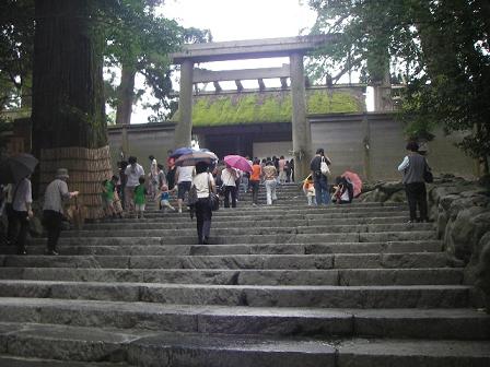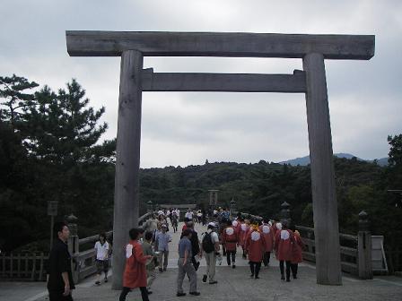天の岩戸からは名水が湧き出ているらしく、おばちゃんが汲みにきてた。 なかなかの隠れ観光地といった感じ。 ついでに伊勢神宮にもお参りに行くべ。 お昼前に到着して神宮前は少し渋滞ぎみだった。 すぐに有料駐車場へ車を入れて、いざ出陣。 おかげ横丁なる商店街があった。 おみやげやら名物やらがたくさんあって楽しそうなとこだ。 特に魚好きの俺は、干物でめずらしいそうな物を買ってみた。 さー伊勢神宮へ踏み込むべし。 俺は知らなかったのだが、伊勢神宮には内宮と外宮があるらしい。 俺が行ったのはどうやら内宮。 これが本殿らしい。天照大御神が奉られているのだ。 先ほど天の岩戸にも行ってきたし、日本書紀の時代を満喫なのだ。 さて11時過ぎ、そろそろ伊勢ともお別れして四日市市のアオキくんに会いに行かなくては。 昼飯をおごってくれるということで、うなぎ屋さんに連れて行ってくれた。