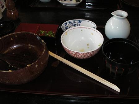 お薦めのひつまぶしを注文。 うなぎには関東焼きと関西焼きというものがあるらしく、四日市は関西焼きらしい。 ちなみに浜松は関東焼きだそうだ。 生まれて初めて本格的なひつまぶしという物を食った。 お~いしー! 食う前に写真を撮るのを忘れてしまった。完食。