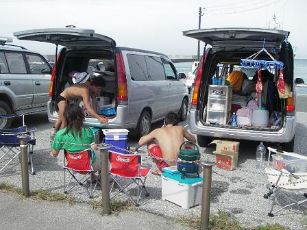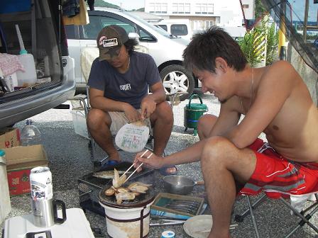 オンショアながらセット胸~肩で面ヨシ。30~40人って感じかな。 グフィーがキレイに割れてる。 昨夜からこちらに来てたモグ達はもう入ってるので、昼飯前の1ラウンド。 13時、遅めの昼飯タイム。 早速BBQ開始。 モグのお知り合いでこちらの常連さんと合流させてもらった。