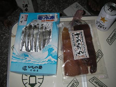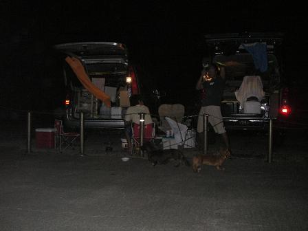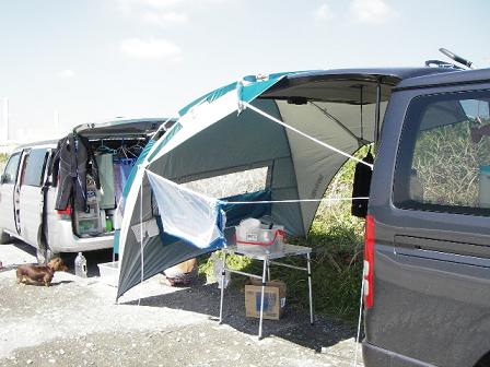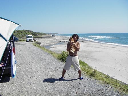 手羽先と伊勢のお土産のキスの干物をパタパタ、パタパタ。 このために遥々やって来たんだな~ 午後オンショア強風の中、2ラウンド目に突入。 そこそこ遊んで、今日は終了。 今夜はこのままフェリー乗り場で一泊だ。 ランタンに火を灯しいい感じ~ 夜も七輪でBBQ~肉とお魚三昧だ。 モグは昨夜相当飲みすぎたらしく、テンション低~い。 早々に寝ちまいやがんの。 伊勢の干物じっくり焼くとマジうめー!!! 飲んで食って今夜もおやすみ~