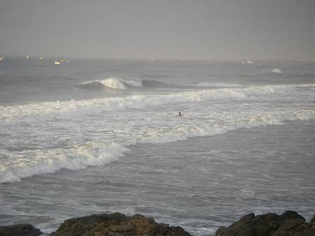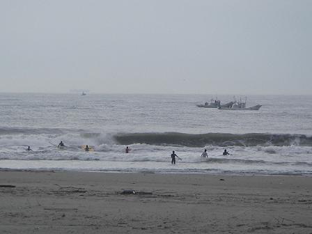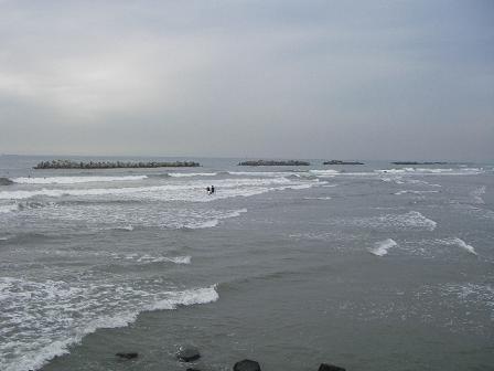 あっという間に波も下がって、つまらんということで、モグが釣りをしたいと言い出したので赤羽根漁港へ移動。 ここもサーフポイントみたい。けっこうやってる。