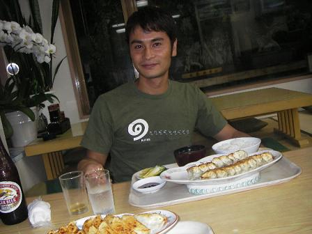 静岡に来てから思ってるんだけど、女の子のショートボードが多くて皆上手い! モグはテトラで穴釣り。途中雨が降り出して俺は車に戻って昼寝~。 カサゴが一匹連れたところでモグも満足。 さー浜松に移動するべ~ 浜名バイパスを爆走!昔は有料だったが、いつも間にか無料に! 東側は波がないので、また浜名バイパスを戻って、新居というところに。 腹波だが、いいの待てば結構遊べた。 陽が沈むまで遊んだ。 満足できたよ。 そして一旦浜松でモグと別れて、俺はノナカさんに会いに行った。 うなぎ屋さんはもう遅かったので、おいしいギョウザ屋さんに。 ノナカさん家の前の店である。 ギョウザ定食の中。たぶんこれで1000円くらい。 ゴチになりやす! ノナカに会うのも3年ぶり? すっかりJrも大きくなって、イッチョ前にしゃべるようになってた。 2nd-Jrも産まれてたぜ! Jr達がまだ小さくてご迷惑なので早々に退散。 教えてもらったスーパー銭湯でモグと待ち合わせ。 ひさしぶりの風呂。きー~もちー!! しかしここは夜中3時で終了ということで、朝まで寝れる場所へ移動することに。 天竜川を越えて少し行ったコンビニで一泊することにした。 お酒もトイレもあるよ~ 今夜は冷えるね~