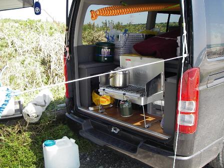そしてようやく原発そばのシャークというポイントに到着。 ひざ~もも。しかし形もよく乗れそうなのでここで1ラウンド行くことにした。 誰もいないので俺たちだけの貸切状態。 なんだかんだと2時間弱遊べた。 モグはピーマンで小波を最大限に満喫してるようだった。 腹が減ったので終了。 風が強くなってきたので、車の中でツインバーナー炸裂。 パスタを茹でる。