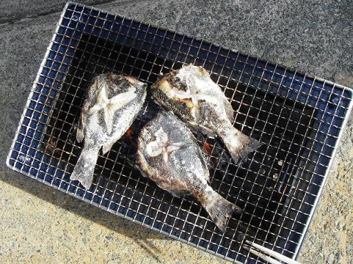 「塩焼きにして食べましょう」(ー_ー)!!え?マジ? 仕方なくさばくことに・・・焼くの?炭を出すハメになった(-_-;) しかしまぁ うまそうに焼けた。 あーあー飲み出しちゃった(●^o^●) みっちゃんの彼も釣りを終えて戻ってきた。 2ラウンドやる気がしないので、帰路につくことにした。 お疲れ様m(__)m 俺とラモは温泉でも行くべ~ (@_@;)なんと波があるではないか!! \(◎o◎)/!しかもアウトから頭くらいの波が来てるー! シンジラレナ~イ(^v^) 微サイド、セット頭~トロ厚めでロング向きのイージー インサイドのグフィーは巻いてショートのうまい人が入ってた。 セット間隔が長くてアウトは楽々。かぶらないで出た。 4人くらい。皆さんおじさん。特に一番アウトにはってるロング二人はうまい。 一番デカイセットを待って、持って行く姿はハワイを思い出させてくれた。 やっぱ神様っているのかな~(^v^)日ごろの行いがいいとご褒美くれるんだな~ 渋滞すると思ってたけど、まぁ予想した通り家に着いたのは22時前。 お疲れさんでしたと(^.^) 次は年末の年越しトリップだー 待ってろーメジナー(-_-)/~~~ピシー!ピシー!