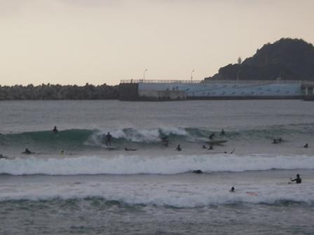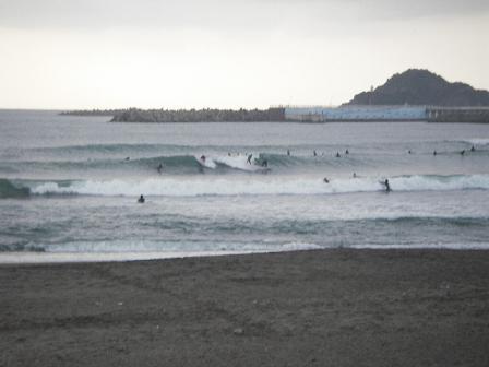 珍しくラモとみっちゃんに先をこされた。 ここに来たのは何年ぶりだろ・・・・(;一_一)混んでる。 左の河口の方が空いてるので、俺は左へ。 ぴさん、ラモ、みっちゃんは混雑を気にしないタイプなので右へ。 河口はオフショア、セット肩~頭、厚くて割れづらい波。5~6人。 アウトにロングは俺とおねえちゃんの二人だったが、次第に5人、6人。 恐い人も出てきたので、止めて右へ。2~3㍍おきに人が・・・ 乗れないので9時半撤収ー(+o+) 茹で上がる前にぴさん、団長は引き上げて行った。 「オスギですっ」「ピーコですっ」「ちょっと!ちょっとー!」